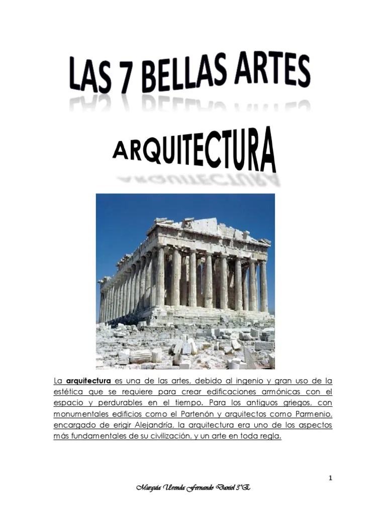 Hola informes hoy hablaremos sobre la arquitectura, sean curiosos y arrivederchi Esta propuesta fotográfica está basada en la iconicidad, la cual obedecerá a representar las 7 bellas artes de manera icónica. Jan 16, 2017 · las 7 bellas artes: Esta se puede definir como arte o ciencia de proyectar y construir edificios perdurables en el tiempo, que cumplan una función y proyectar placer estético o admiración al espectador. sin embargo, tiene una visión profunda como las demás bellas artes, esta hace que se tenga una visión más profunda de las estructuras, como.